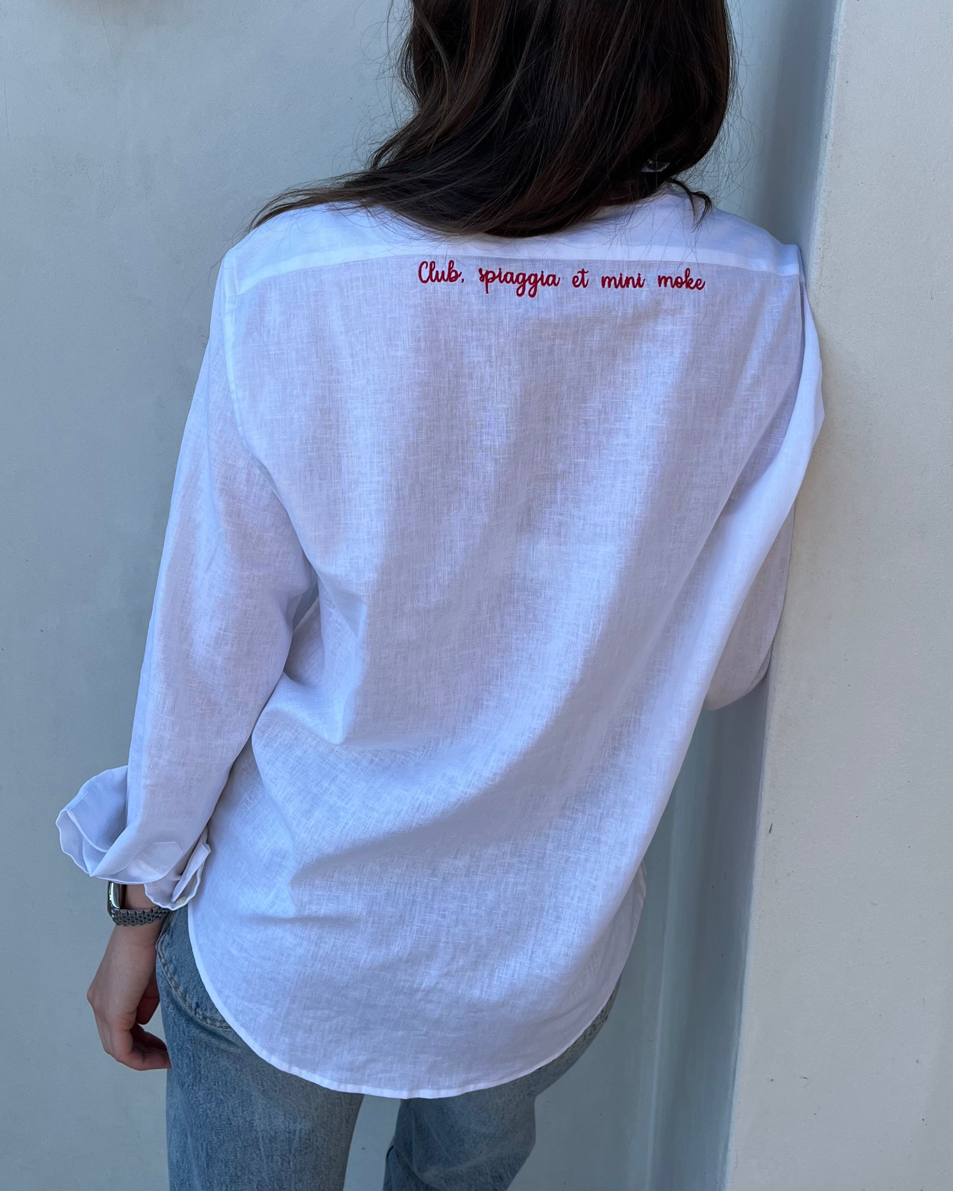 Nous créons des chemises en lin brodées et des tee-shirts floqués, en édition limitée, avec des mots et des phrases qui capturent l’essence d’un été dans le Sud.